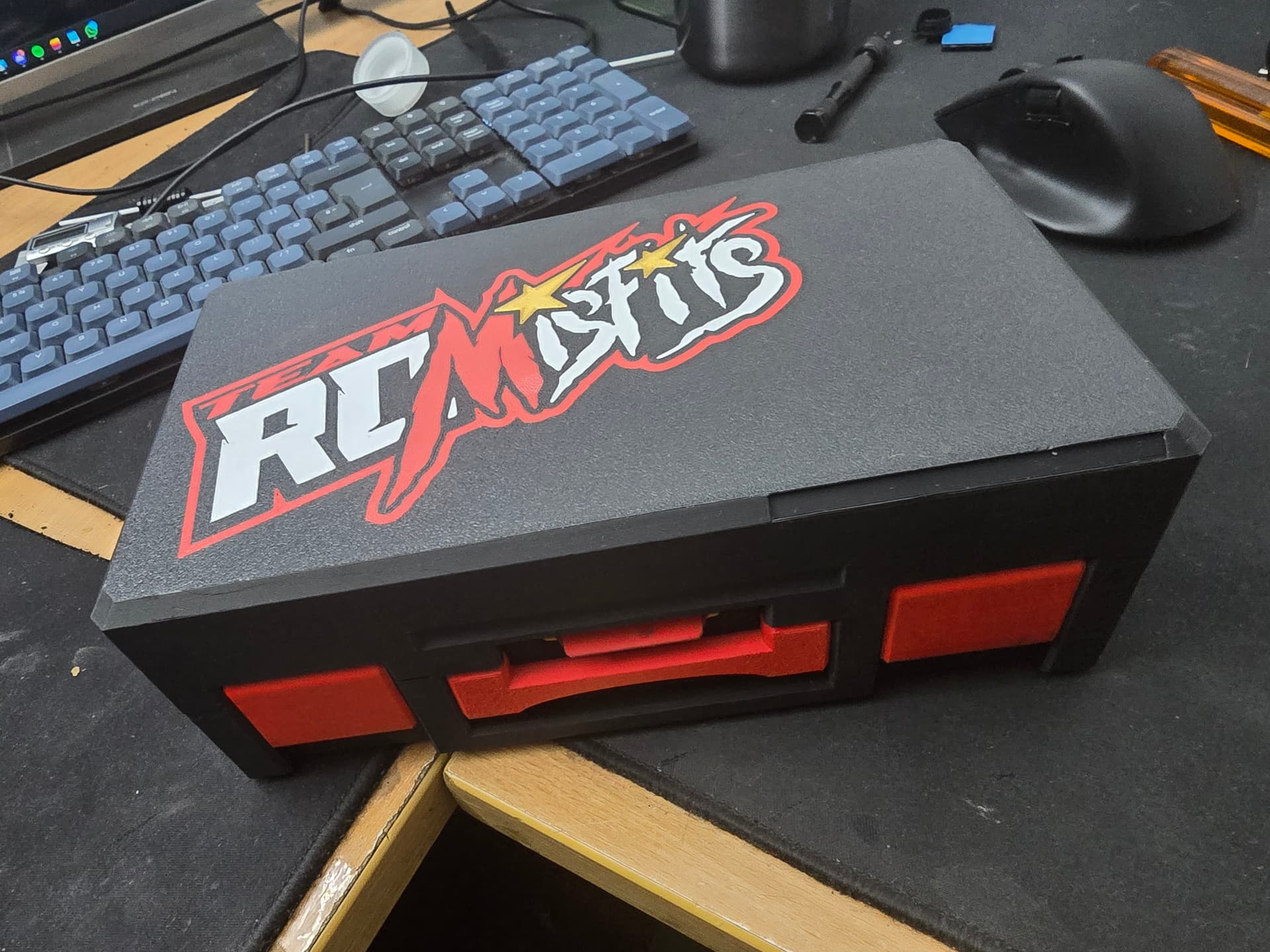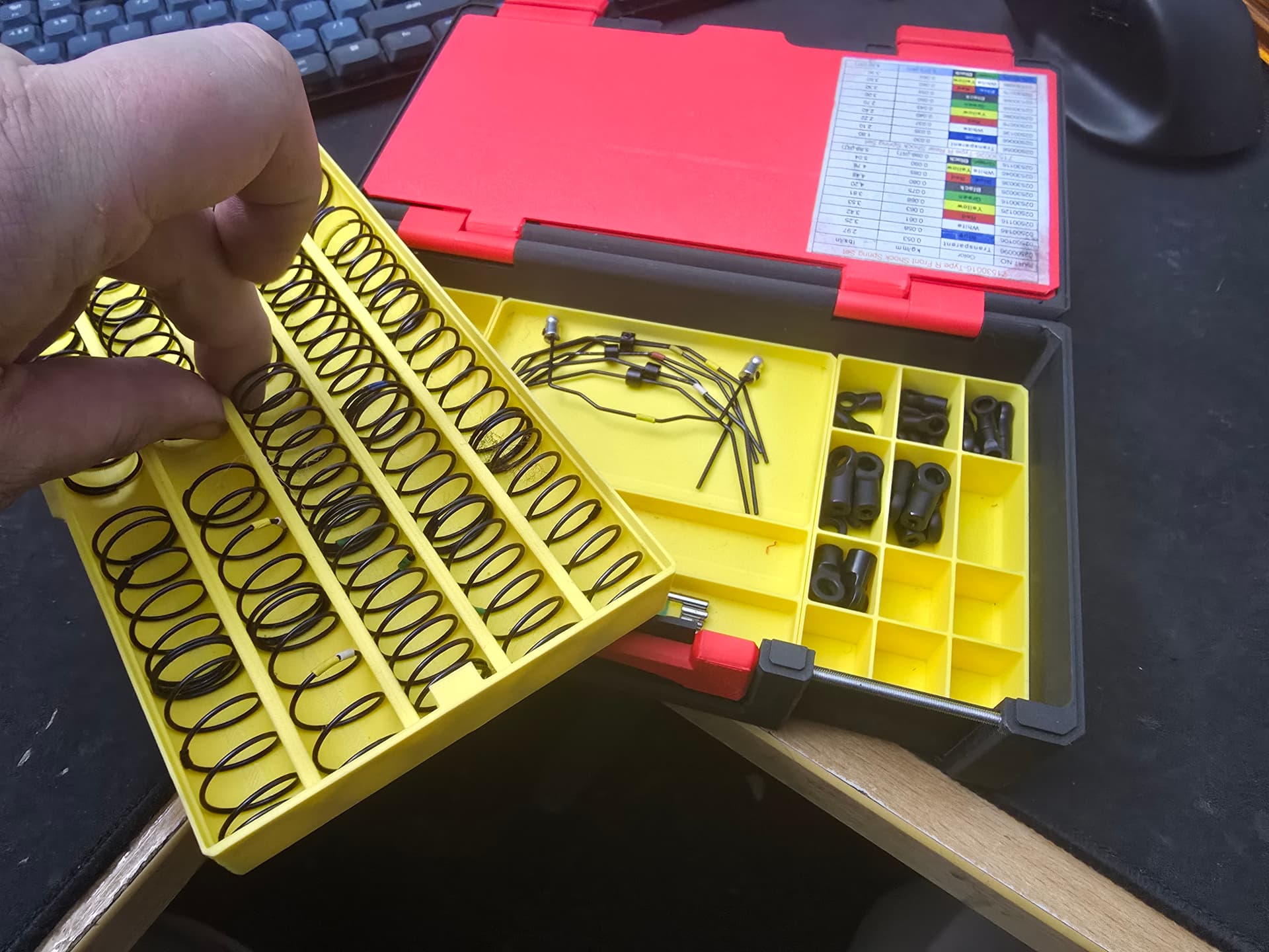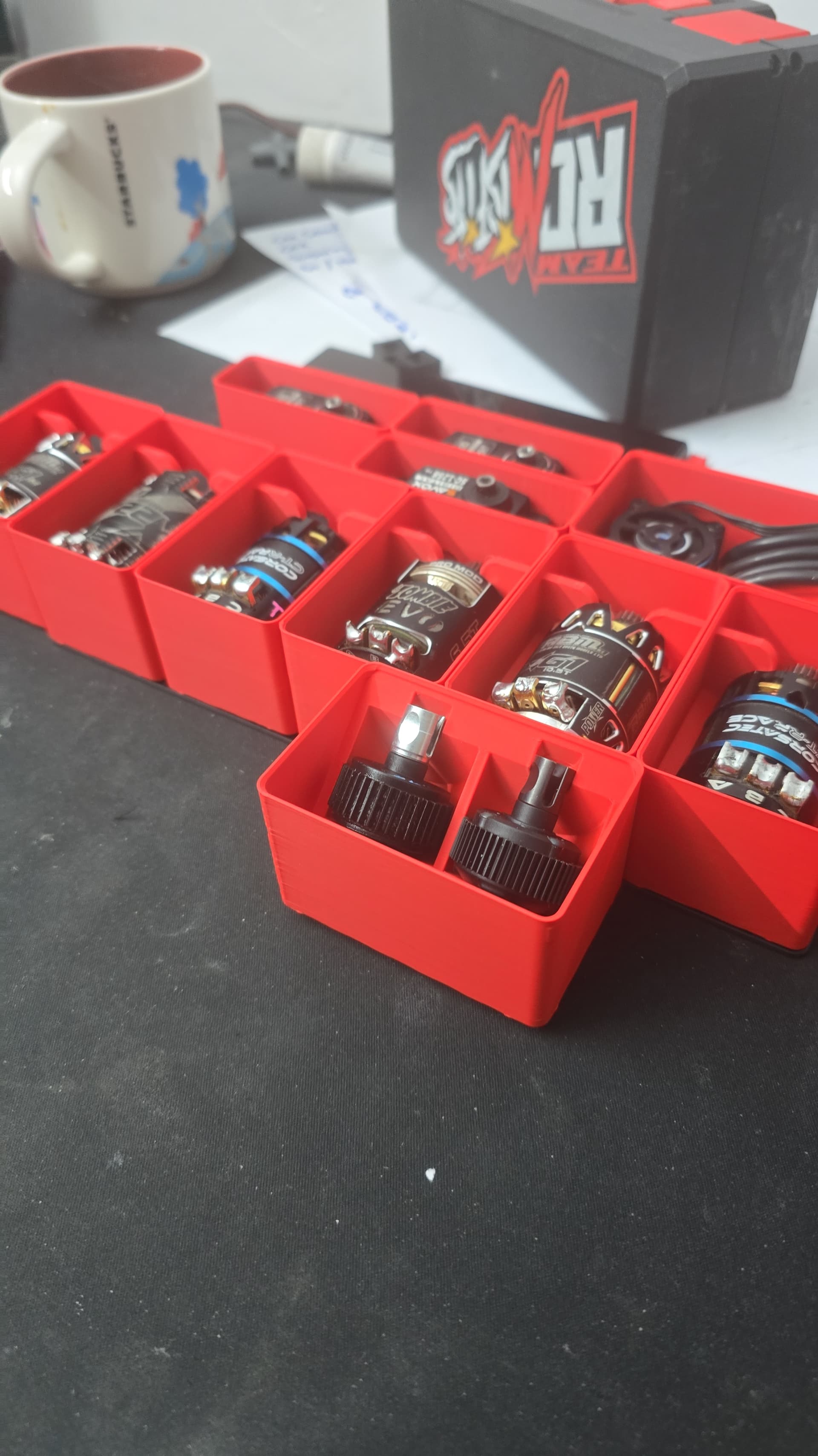 Idea is to carry all tuning parts for 1 car, inc spare diffs, shocks, spurs, pills , pistons, springs etc.