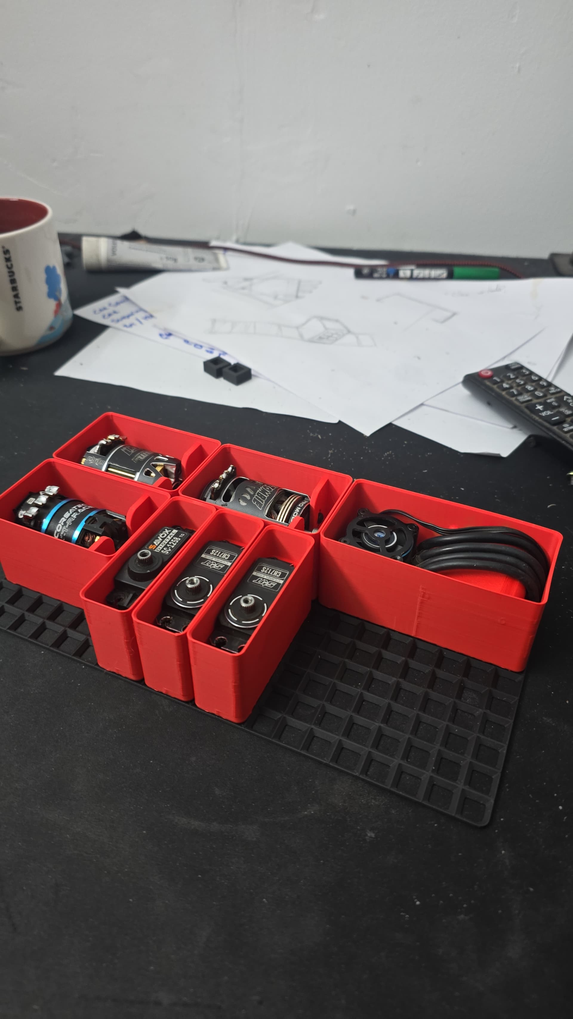 Going modular with the inserts to go in the boxes… a few done so far… motor, diff, servo, esc… although esc needs more work